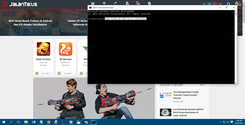 - CTRL + A: shortcut keyboard untuk memilih semua teks yang ada di Command Prompt.